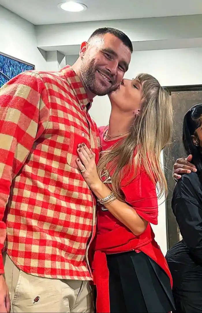 No es la primera vez que Taylor Swift y Travis Kelce hacen una muestra pública de afecto. A principios de octubre, los dos también se volvieron virales después de que Taylor le dio un beso en las mejillas a Travis en una foto que se compartió en las redes sociales.