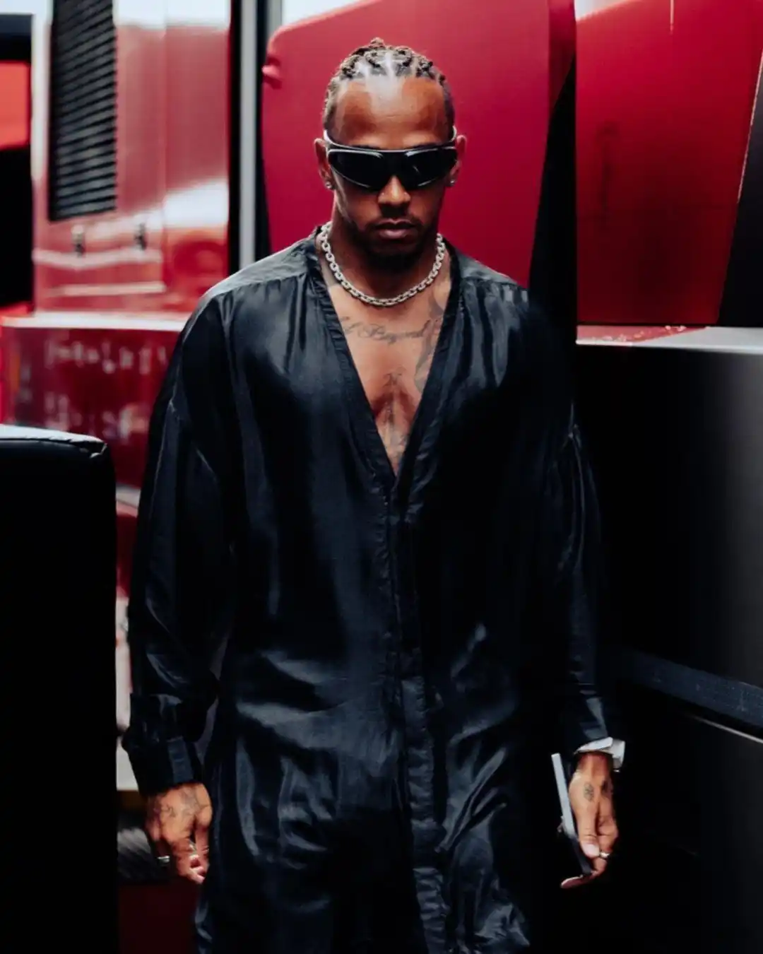 Los últimos trajes que ha usado Lewis son sacados directamente de la pasarela, Eric McNeal ofrece a Hamilton su habilidad para crear piezas atrevidas con un sentido refinado, ofreciendo outfits súper pulidos.