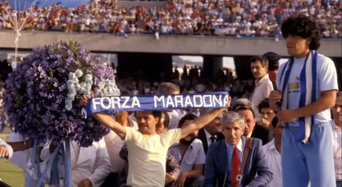 El calendario también marcaba que era 5 de julio, como hoy. Pero ocurrió en 1984. Un chico de 23 años que ya había mostrado parte de su talento (aunque nada comparado con lo que se le vería) y que era uno de los fenómenos más codiciados del fútbol llegaba a la Societá Sportiva Calcio Napoli. Era un club pobre, en una ciudad pobre y con rendimientos pobres. Pero a Diego Armando Maradona no le importó; de hecho, le encantó. Y el 5 de julio de 1984, mientras lo aplaudía un Estadio San Paolo colmado, saludó a los hinchas que ya lo consideraban un ídolo, aunque aún no se hubiera puesto su camiseta.