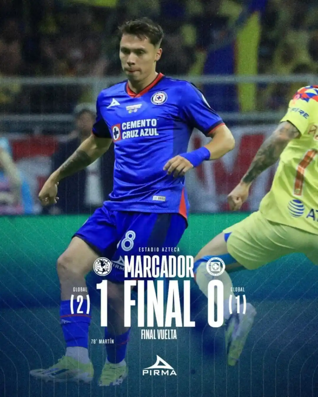 En el partido de vuelta en el estadio Azteca, a Carlos Rotondi se le marcó una falta sobre Israel Reyes que el silbante Marco Ortiz decretó como penal y que le dio el bicampeonato a las Águilas en condición de local ante sus 80.000 aficionados.