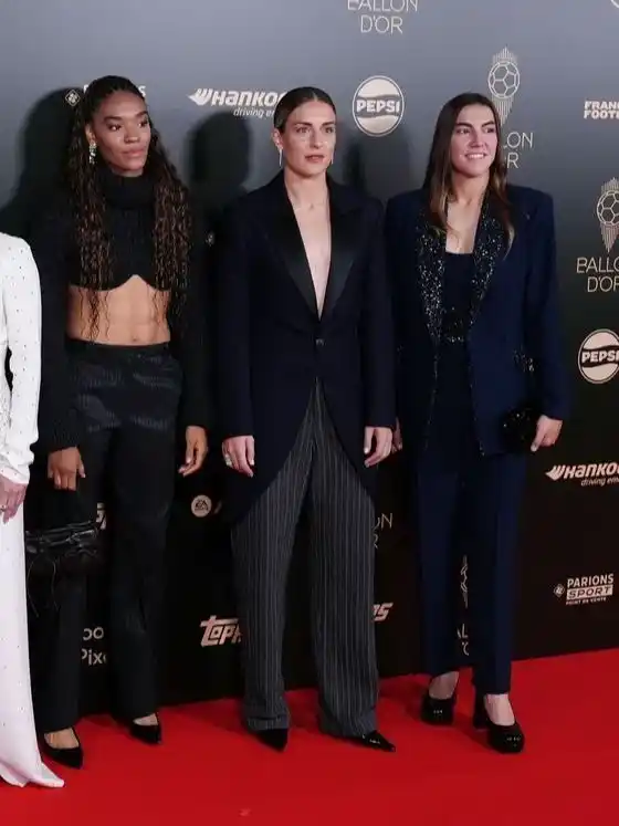 La de Alexia Putellas era otra de las presencias esperadas. La española fue dos veces ganadora del Balón de Oro (2021 y 2022) y estuvo presente para observar como su compañera, Bonmatí, se llevaba el suyo. Putellas optó por una blazer de esmoquin negra, pantalones de raya diplomática y tacones de punta.