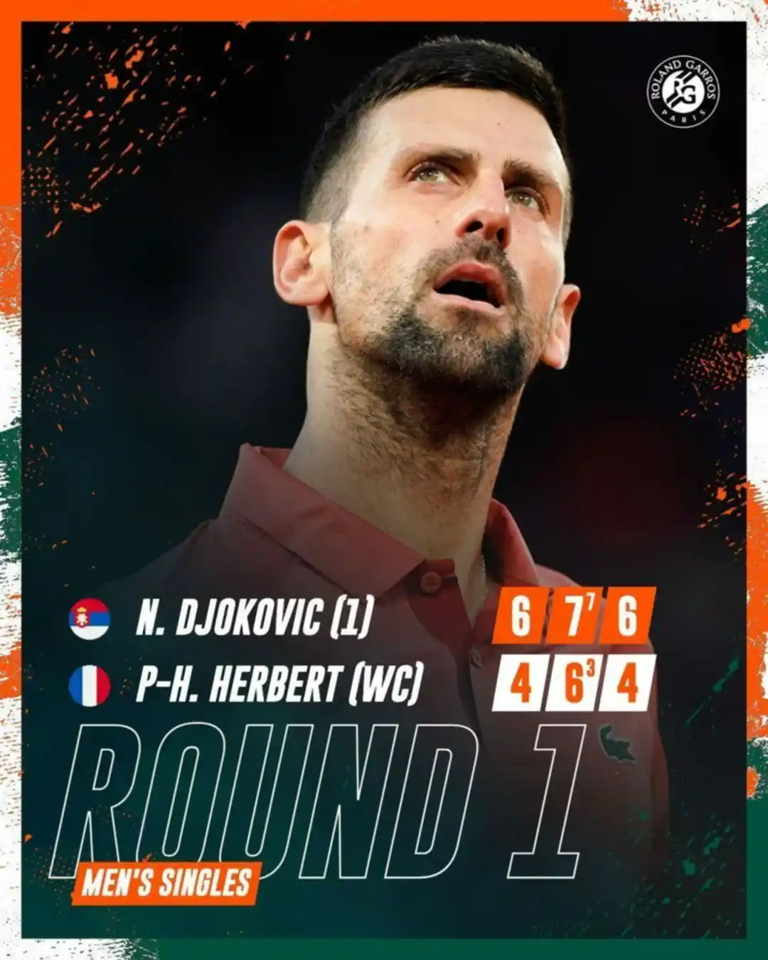 El actual número 1 del ranking ATP, Novak Djokovic, debutó en Roland Garros con una gran victoria en sets corridos frente al experimentado jugador francés Pierre-Hugues Herbert.