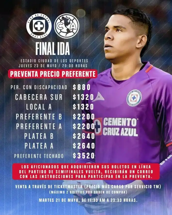 Los boletos más caros para la gran final son de cuatro mil pesos, son los asientos de la sección 100 lateral, es decir el más próximo a nivel de cancha. Cabe apuntar que los precios que dio a conocer América no están considerando los cargos extra que se realicen en el servicio de Ticketmaster, por ello el precio total de cada entrada podría variar.