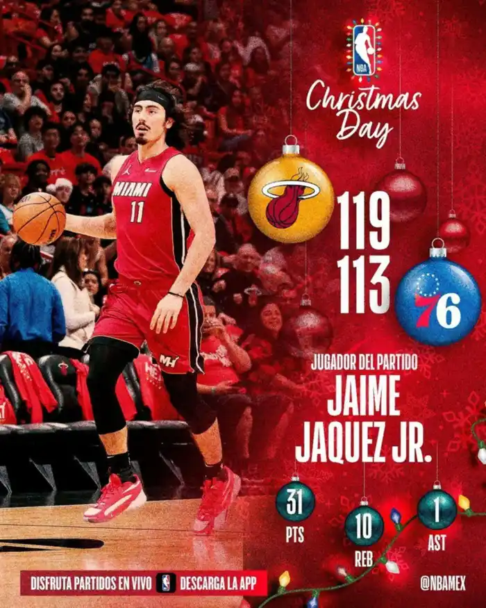 En una nueva jornada navideña, Jaime Jáquez Jr., fue uno de los principales protagonistas en la NBA.
