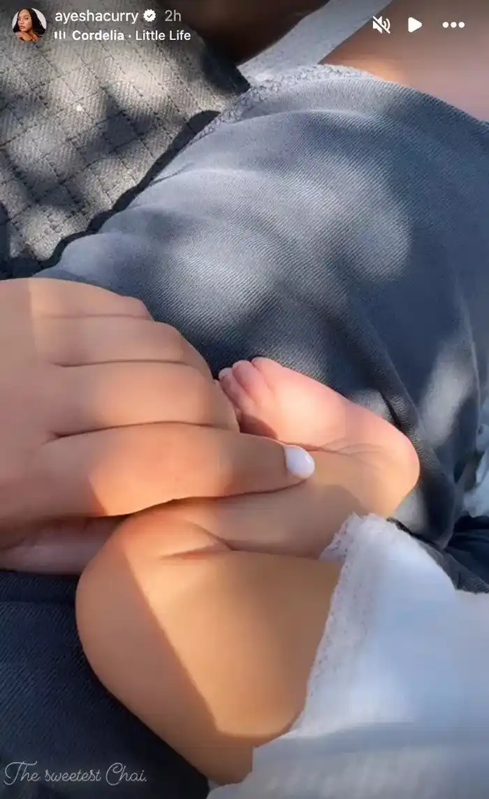 En la dulce imagen, se ven las manos de Ayesha frotando la pierna de Caius mientras su pequeño pie descansa sobre ella. "El Chai más dulce", escribió en la parte superior de la historia de Instagram.