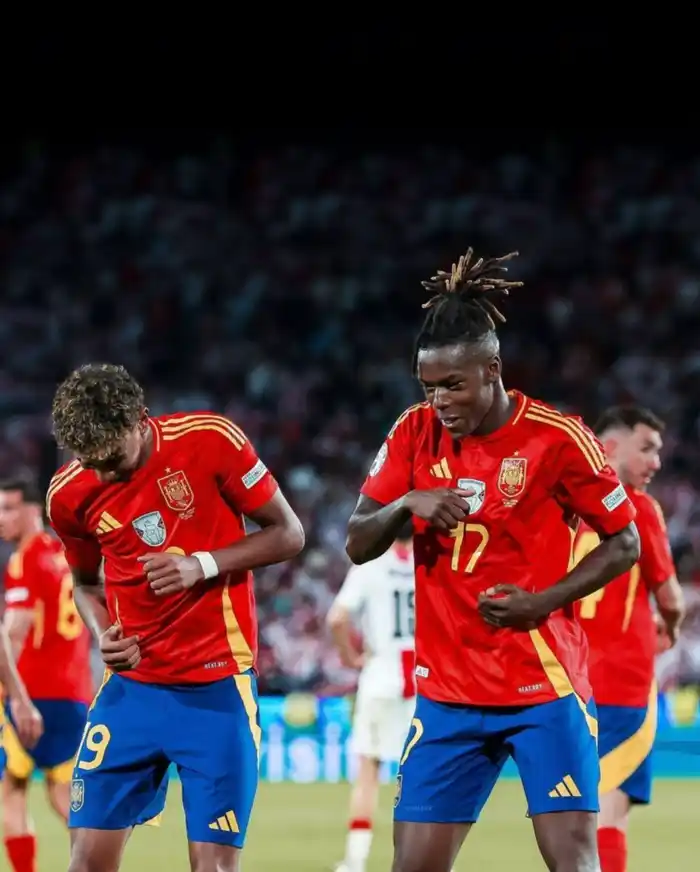 En el partido por los Octavos de Final ante Georgia, Nico Williams selló el 3 a 1 (España acabaría marcando un cuarto) y junto a su colega Lamine Yamal imitaron uno de los icónicos bailes de Neymar para celebrar. Pero eso no es todo, ya que una vez finalizado el encuentro, Nico y Lamine protagonizaron un momento increíble. Mientras celebraban dentro del terreno de juego, ambos jóvenes jugaron piedra, papel o tijera para ver quien tomaba agua primero. Williams ganó y celebró como un niño.