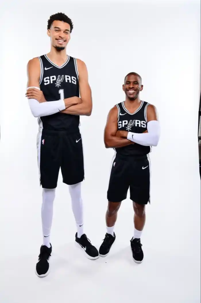 Serán compañeros en San Antonio Spurs y aprovecharon para tomarse una curiosa foto. El francés mide 2,24 metros y Paul, 1,83. La diferencia de 41 cm quedó en evidencia en la imagen. Wembanyama y la flamante incorporación de los texanos, de todos modos, buscarán sacar a los Spurs de los últimos puestos y potenciar el nivel del pívot estrella, con un gran futuro en la NBA.