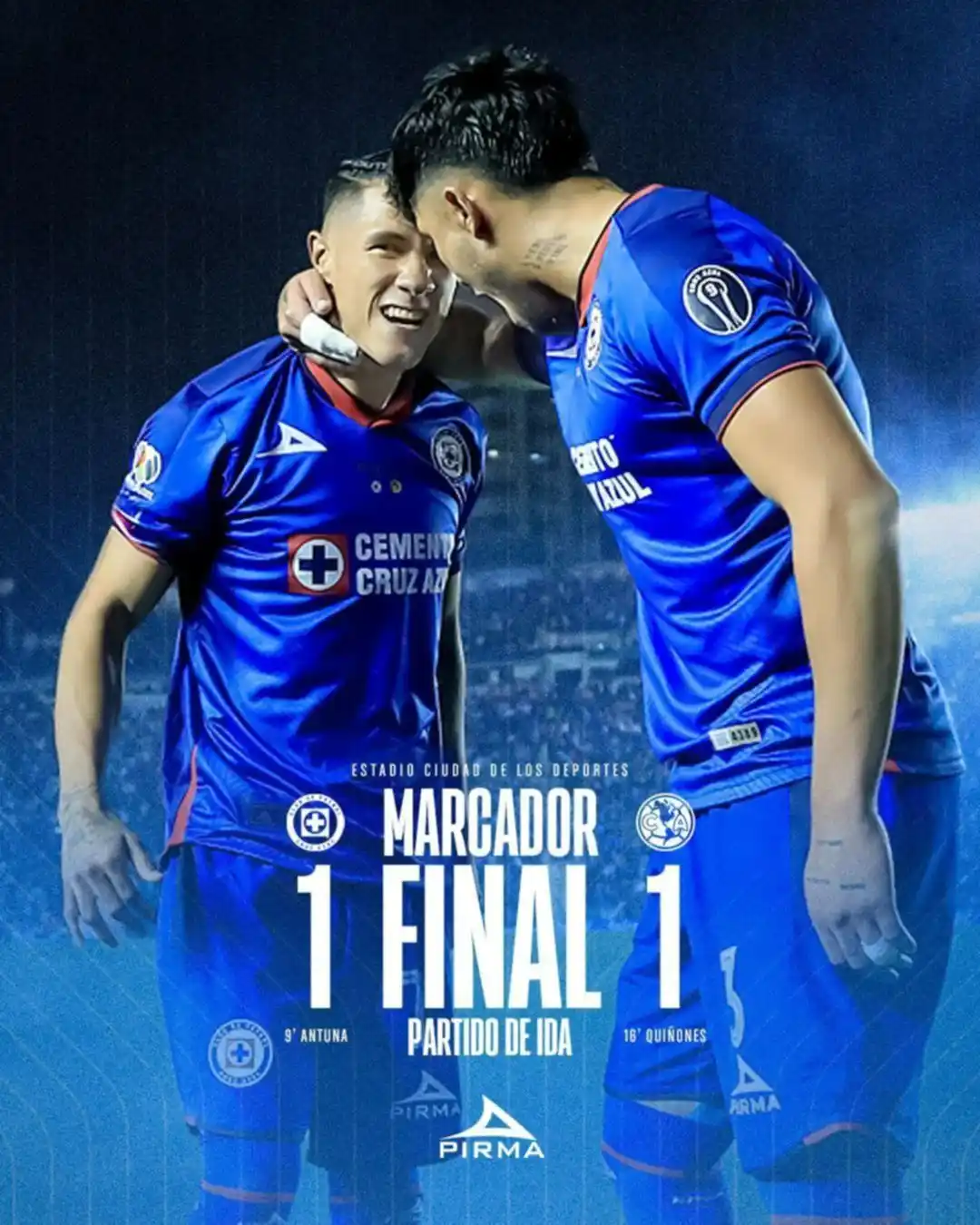 Por el lado del conjunto celeste, Uriel fue el encargado de marcar el 1-0 en tan solo 9 minutos de partido. Por otro lado, el colombiano Julián Quiñones convirtió para darle al América el empate 1-1 en el estadio de Cruz Azul, en el partido de ida de la final del torneo Clausura 2024 del fútbol mexicano.