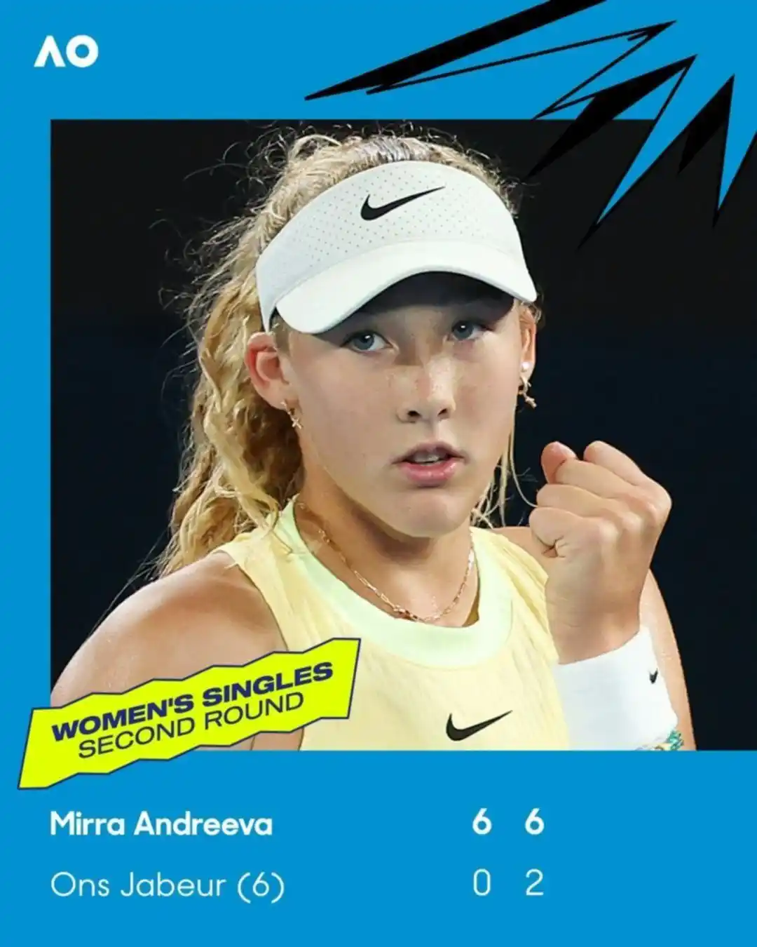 Por la segunda ronda del Australian Open, Mirra Andreeva ganó contundentemente frente a la número 6 del mundo, Ons Jabeur.
