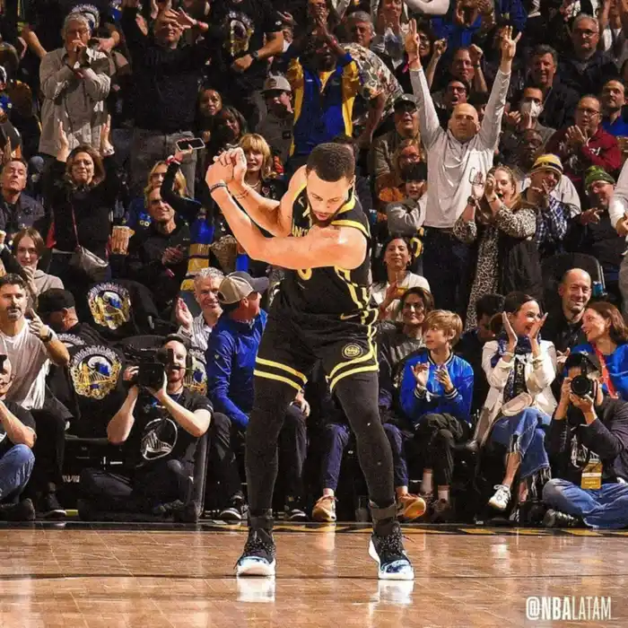 Stephen Curry volvió a brillar en la NBA y festejó con un curioso gesto hacia las gradas. La actual estrella de los Golden State Warriors realizó un triple que festejó aludiendo a un swing de golf, deporte en el cual se destaca.