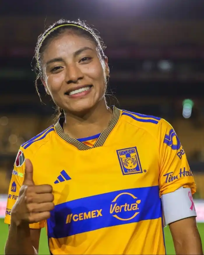 Tiene 23 años y juega como mediocampista en Tigres. Acumula 5 títulos nacionales y fue la goleadora mexicana en el Mundial sub-20 de Francia.