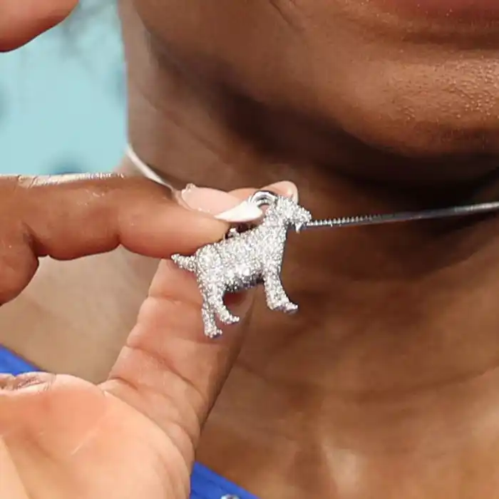 El brillante collar de cabra en 3D de la gimnasta de 27 años, que se puso después de ganar la final del concurso completo en los Juegos Olímpicos de París de 2024 , rápidamente llamó la atención de los fanáticos.