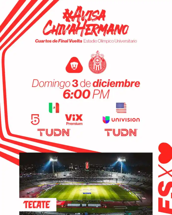 La fiesta grande del fubol mexicano ha iniciado y ahora las Chivas buscarán su pase a la seminifial en el Estadio Olímpico Universitario ante los Pumas.