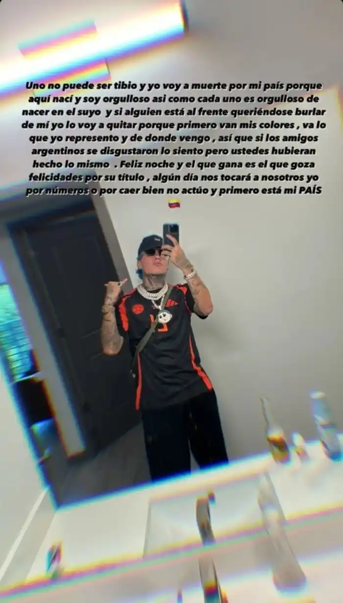 Un video evidenció cómo el músico colombiano Blessd quiso quitarle a un argentino una camiseta de Messi durante la final de la Copa América. En redes sociales, un jugador lo burló.